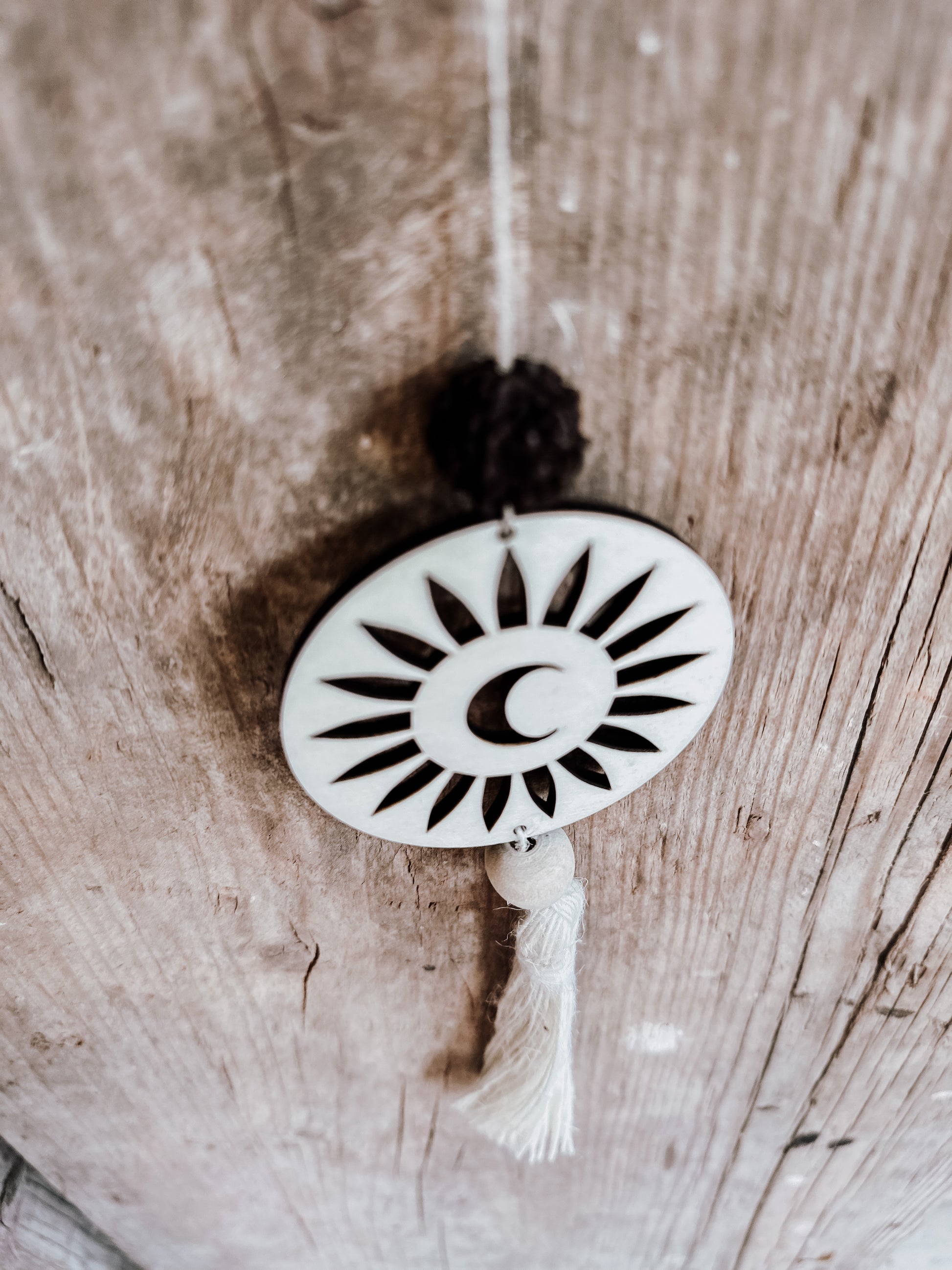 Verleih Deinem Zuhause oder Deinen Geschenken mit unserem Anhänger Mond BOHO eine einzigartige und filigrane Note. Das ausgelaserte Muster und der Tassel aus dünnen Leinenfäden machen ihn zu einem tollen Blickfang. Ideal als Geschenkanhänger oder zur Dekoration an Windlichter. Einfach toll und individuell einsetzbar.