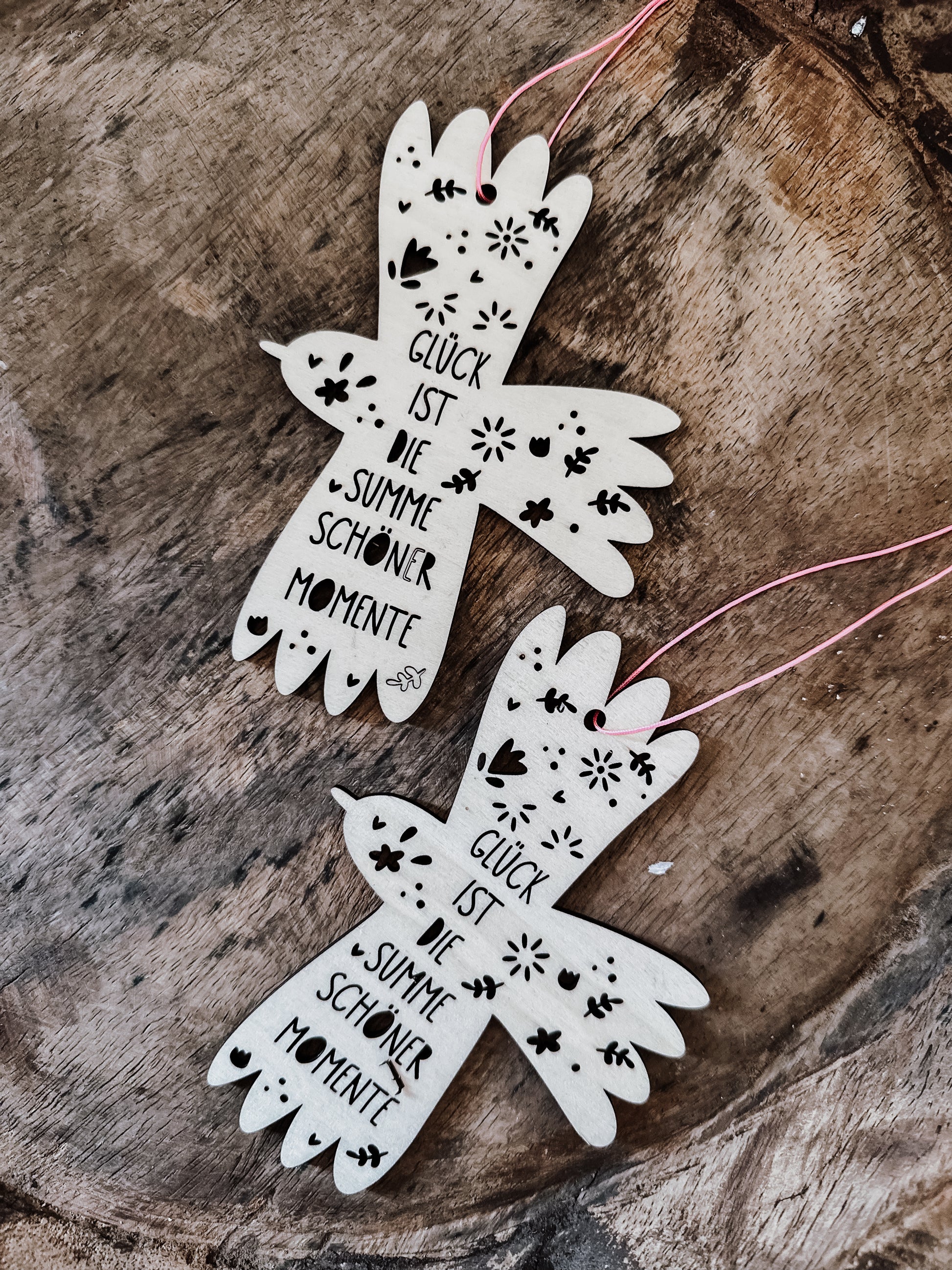 Schlichte Holzanhänger eines Glücksvogel für deine Herzmenschen. Verschenke eine große Portion Glück