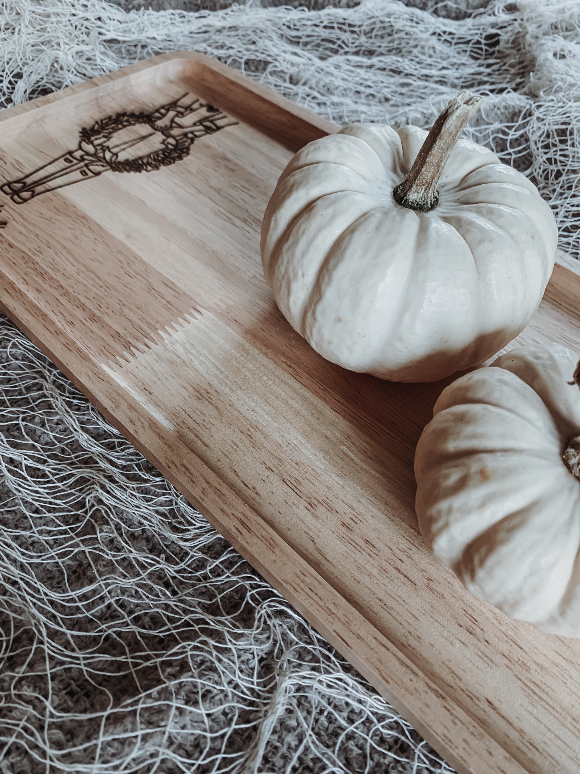 Eine schöne Kerze oder andere schöne Dekorationselemente werden auf diesem wunderschönen Tablett aus Mangoholz mit eingravierten Palmen einen besonderen Platz finden.