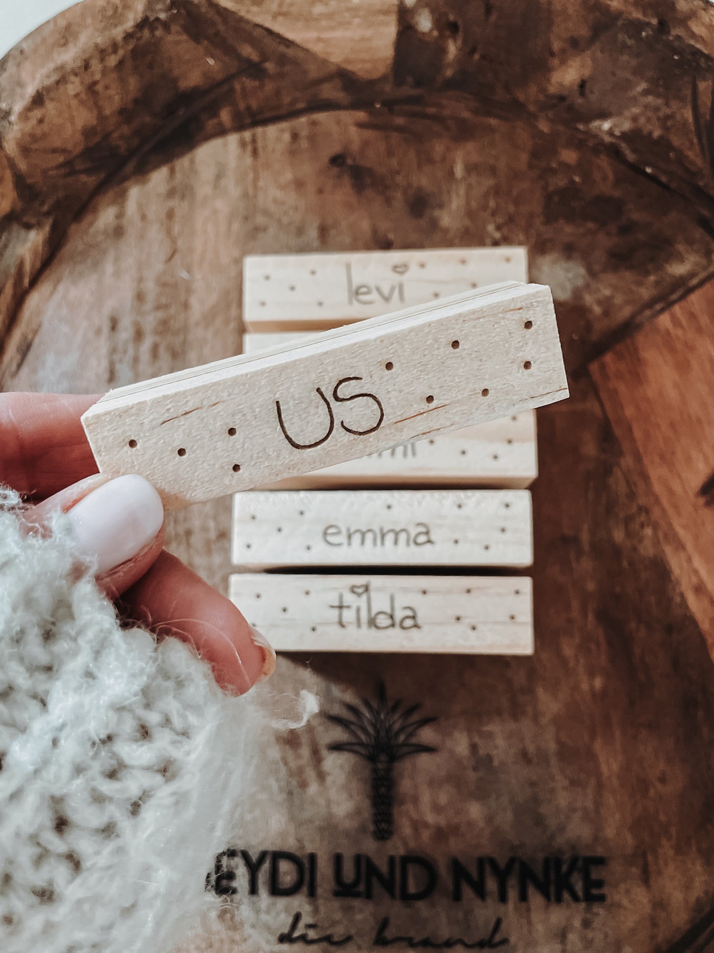 Bitte sende den zu gravierenden Schriftzug mit der zugehörigen Bestellnummer im Anschluss deiner Bestellung per Mail an heydiundnynke@outlook.de