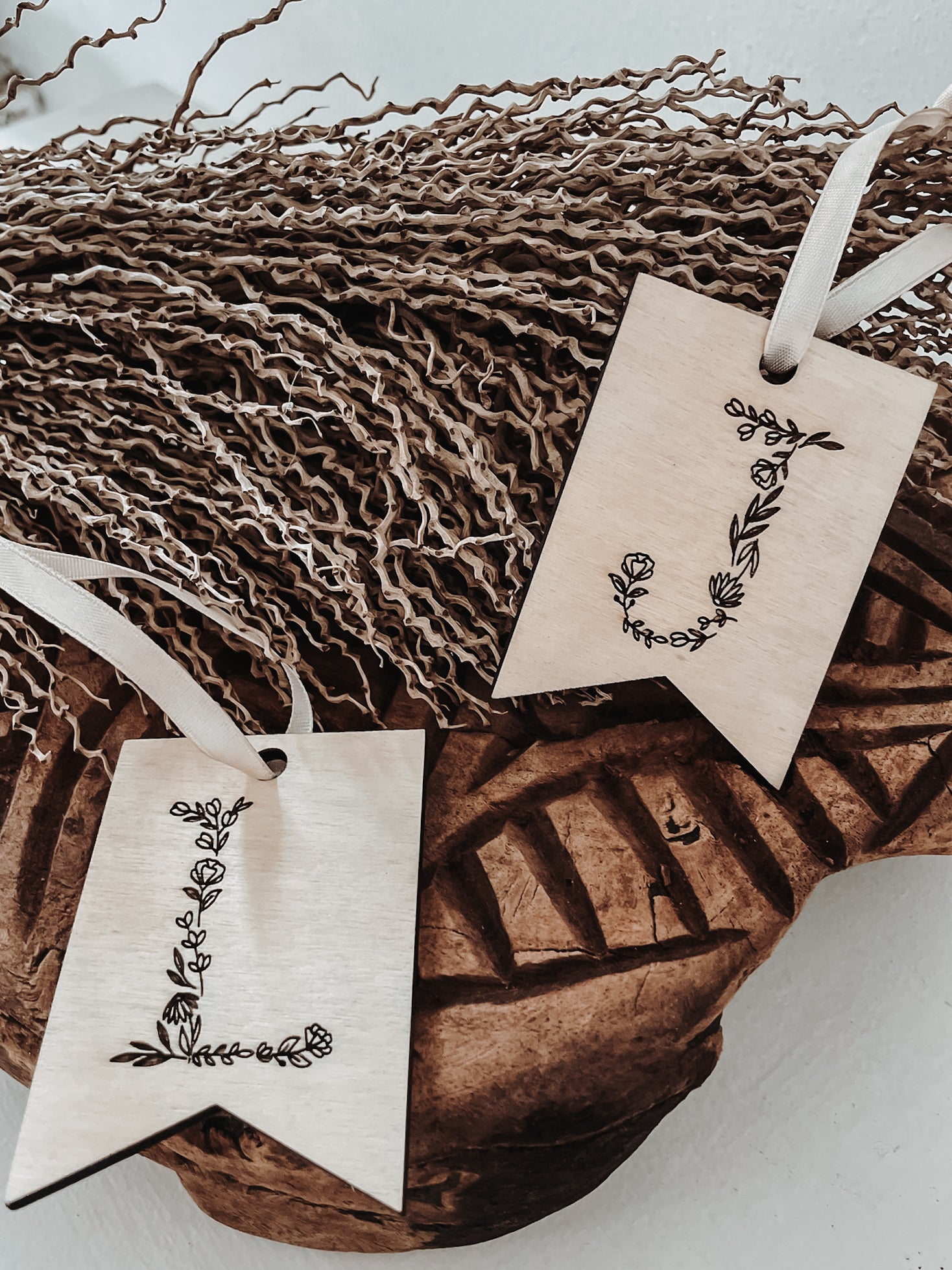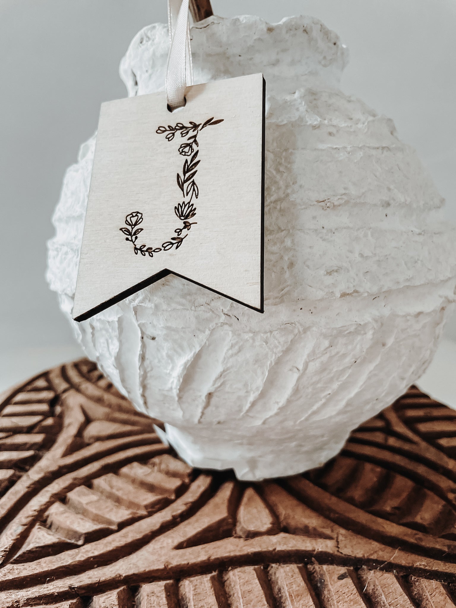 Versehen mit blumigen Initialen ist der Geschenkanhänger aus Holz perfekt für besondere Menschen.