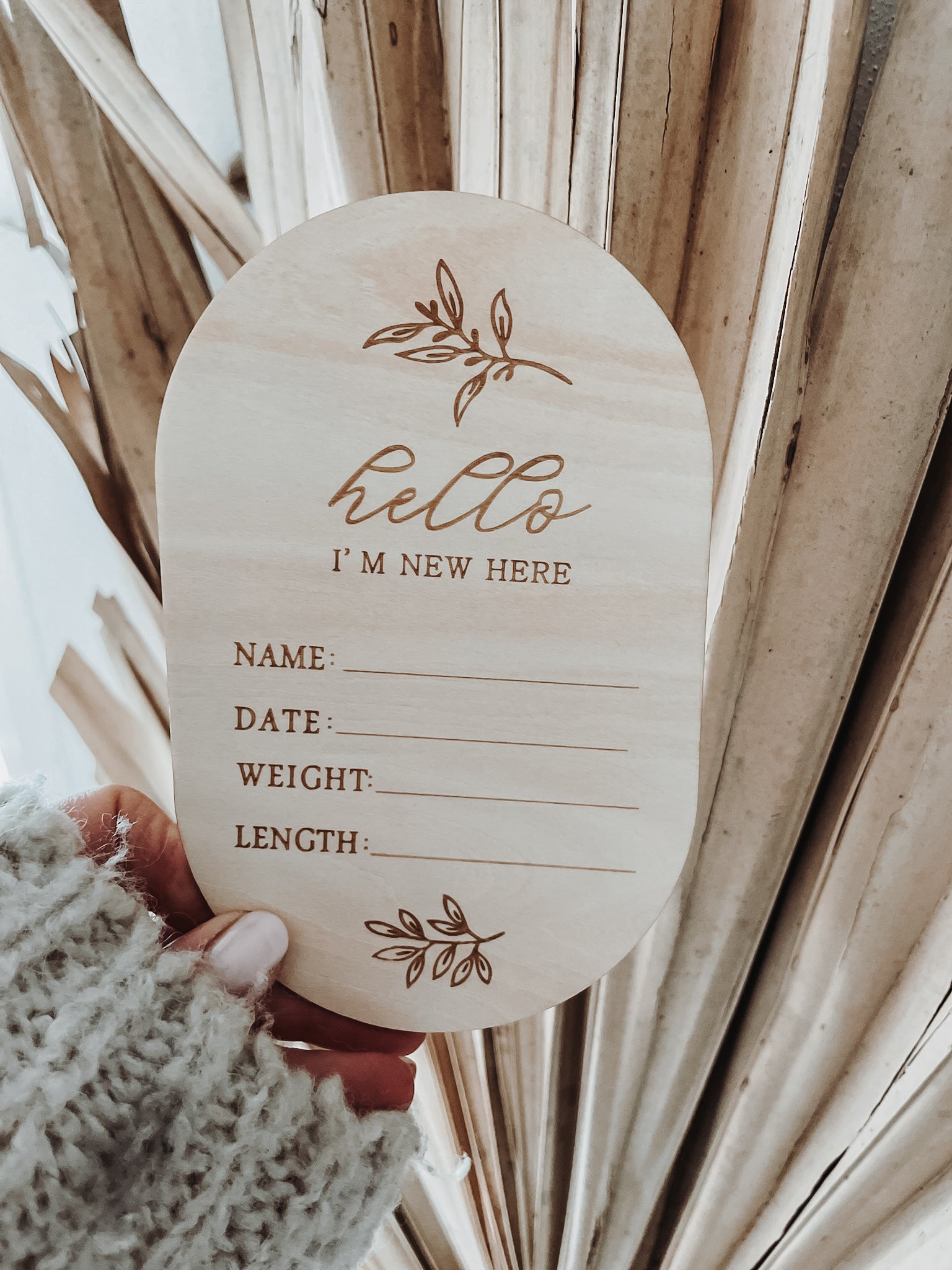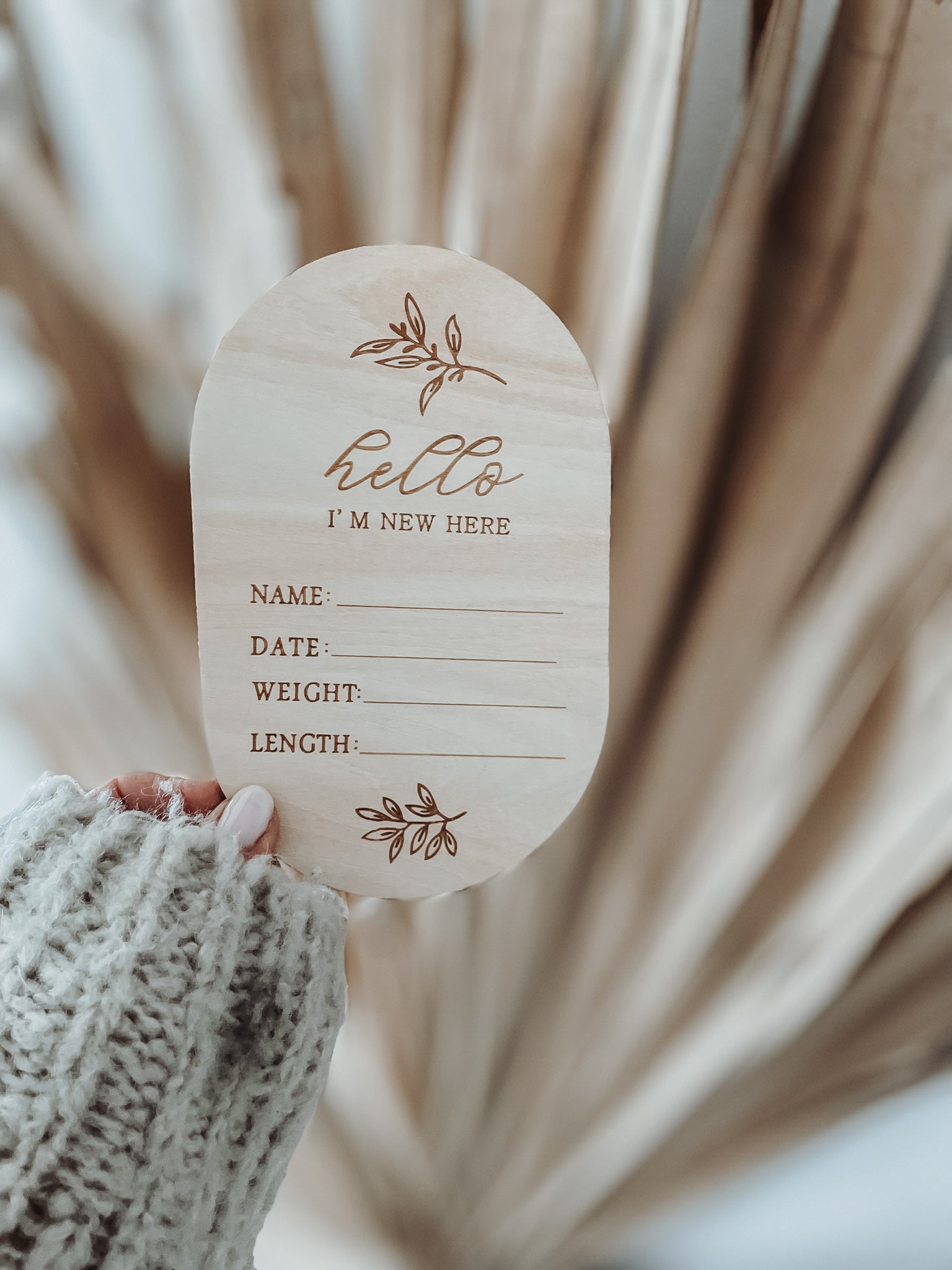 Dieses ovale Holzschild ist eine individuelle Erinnerung an die Geburt deines Babys. Hänge es im Zimmer auf und trage persönliche Details wie das Geburtsdatum, Gewicht und Größe ein.