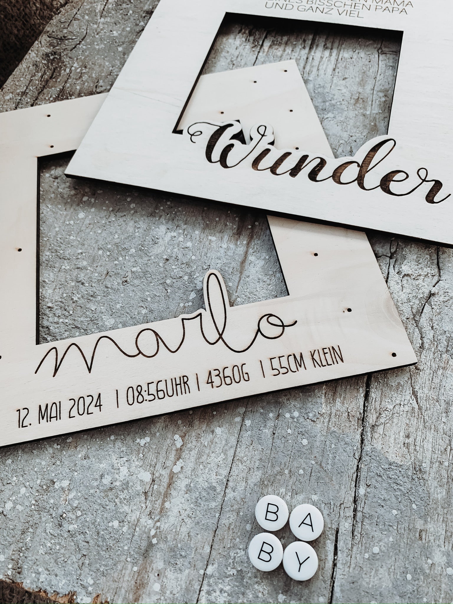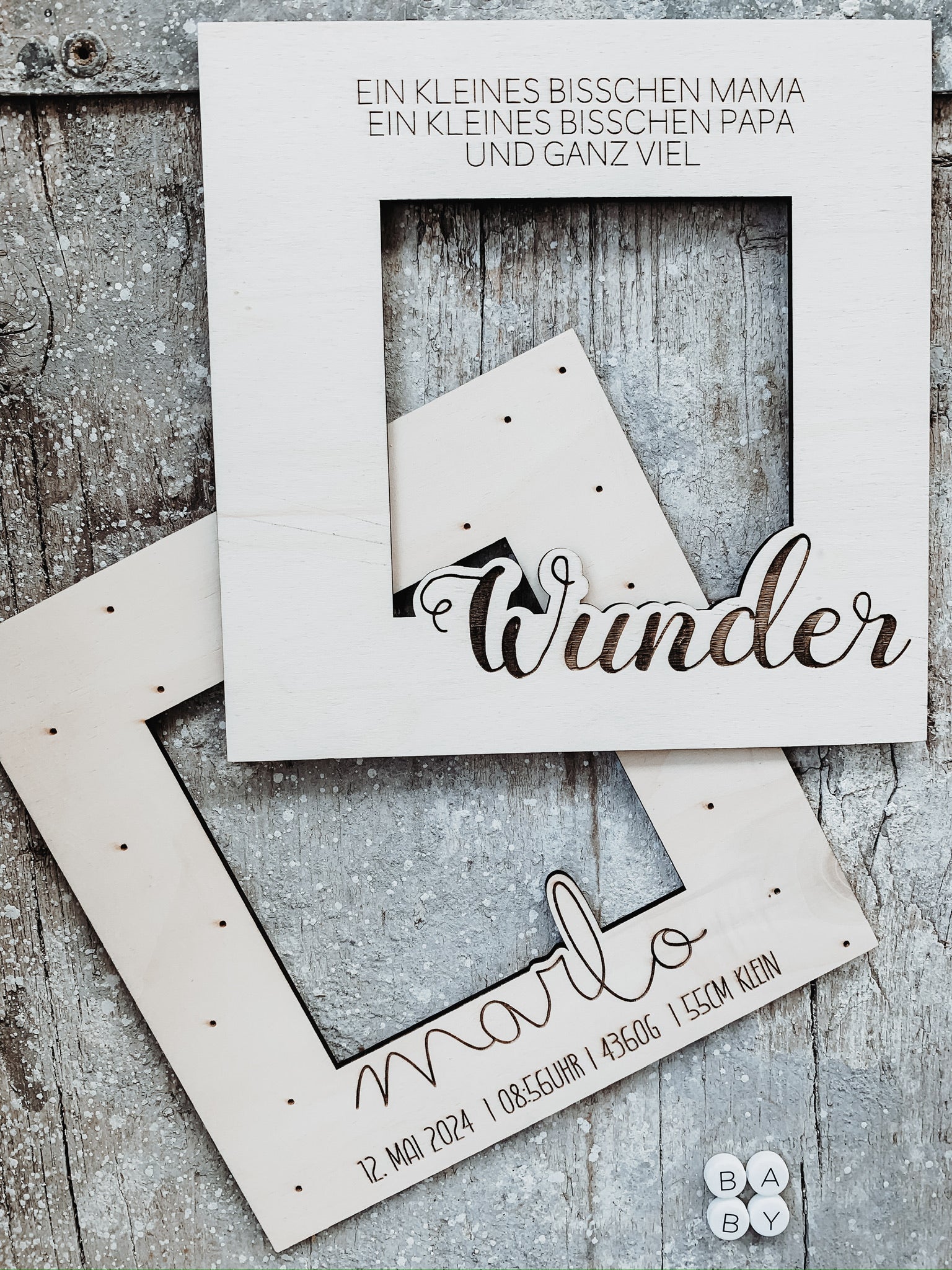 Holzpassepartout Geburt
