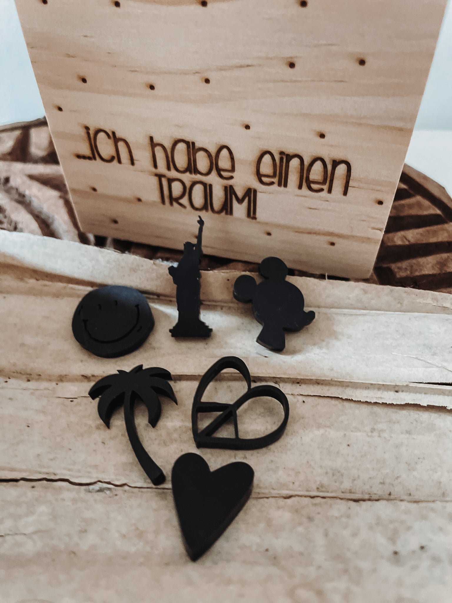Mit der Holzspardose "…ich habe einen Traum" kannst du deinen Herzwunsch erfüllen und für deine Lieblingsreise, Träumereien oder sogar fürs Disneyland :) sparen.