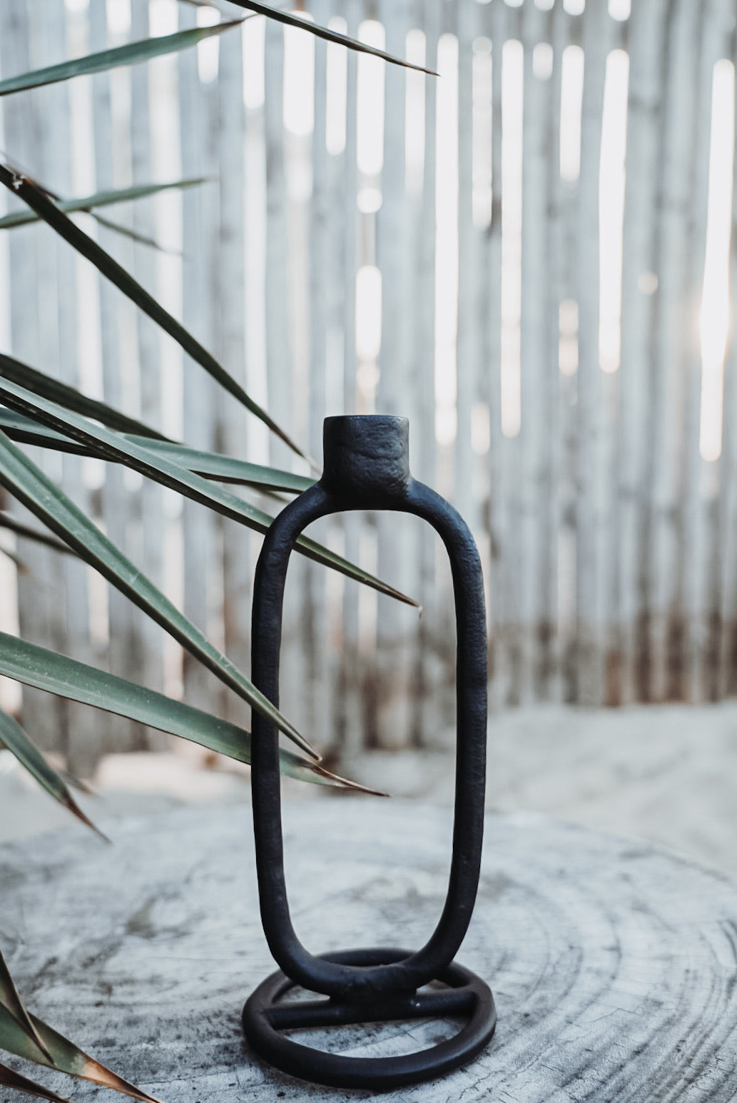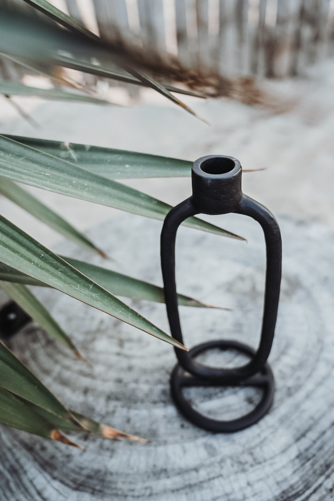 Erlebe die besondere Haptik des besonderen, schwarzen Kerzenständers Britta. Hochwertig verarbeitet, bringt er eine stilvolle Atmosphäre in deinen Lieblingsraum. Perfekt für besondere Abende oder als dekoratives Element.