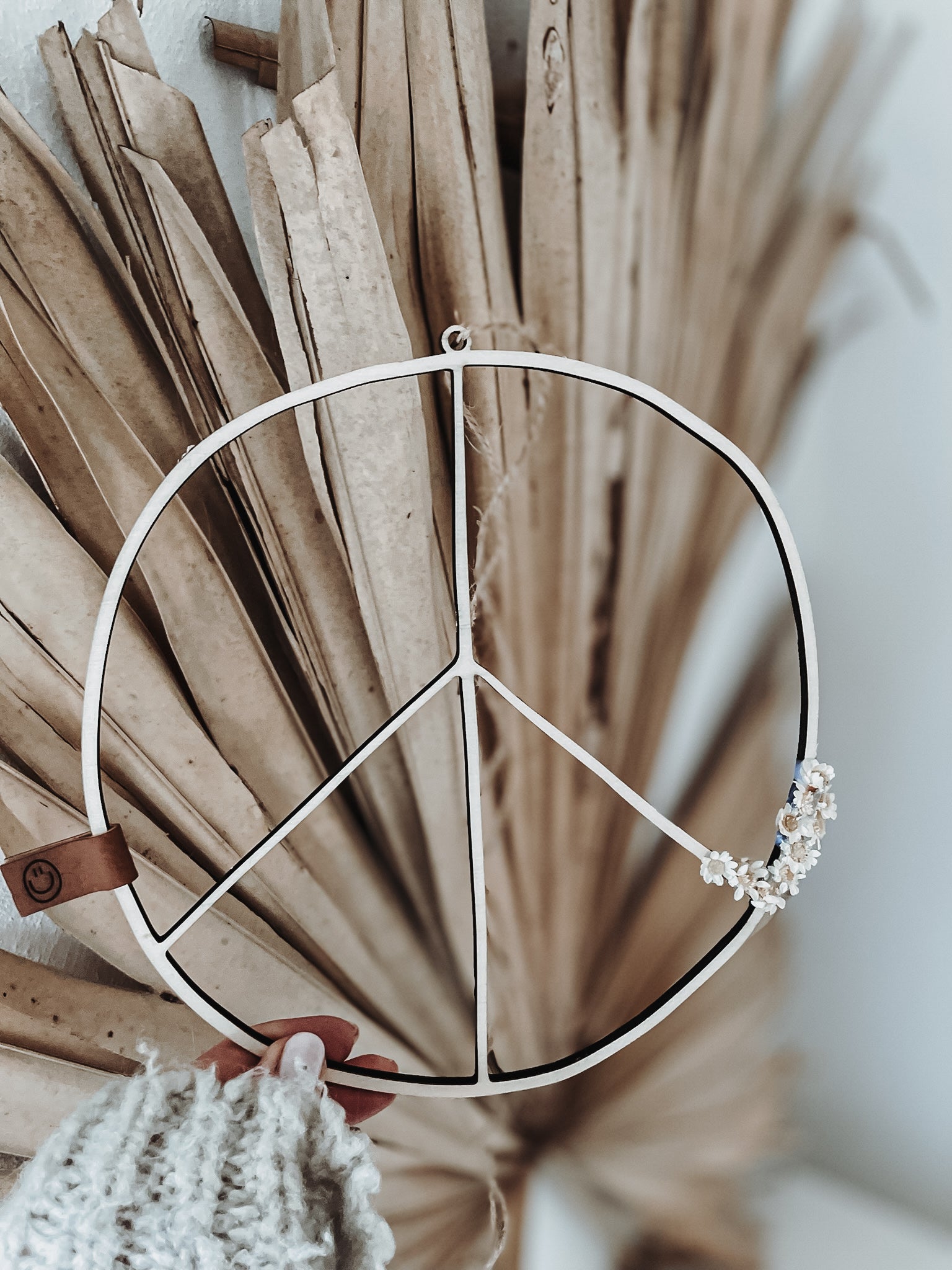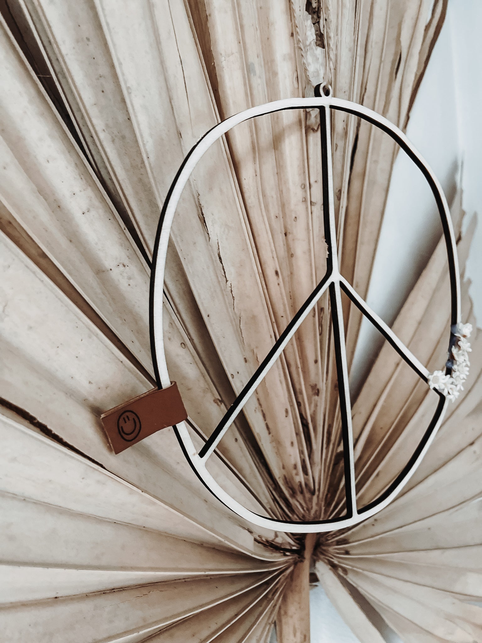 Dieses schöne und sehr filigrane Peacezeichen aus Birkenholz verleiht jedem Raum eine besondere Note.