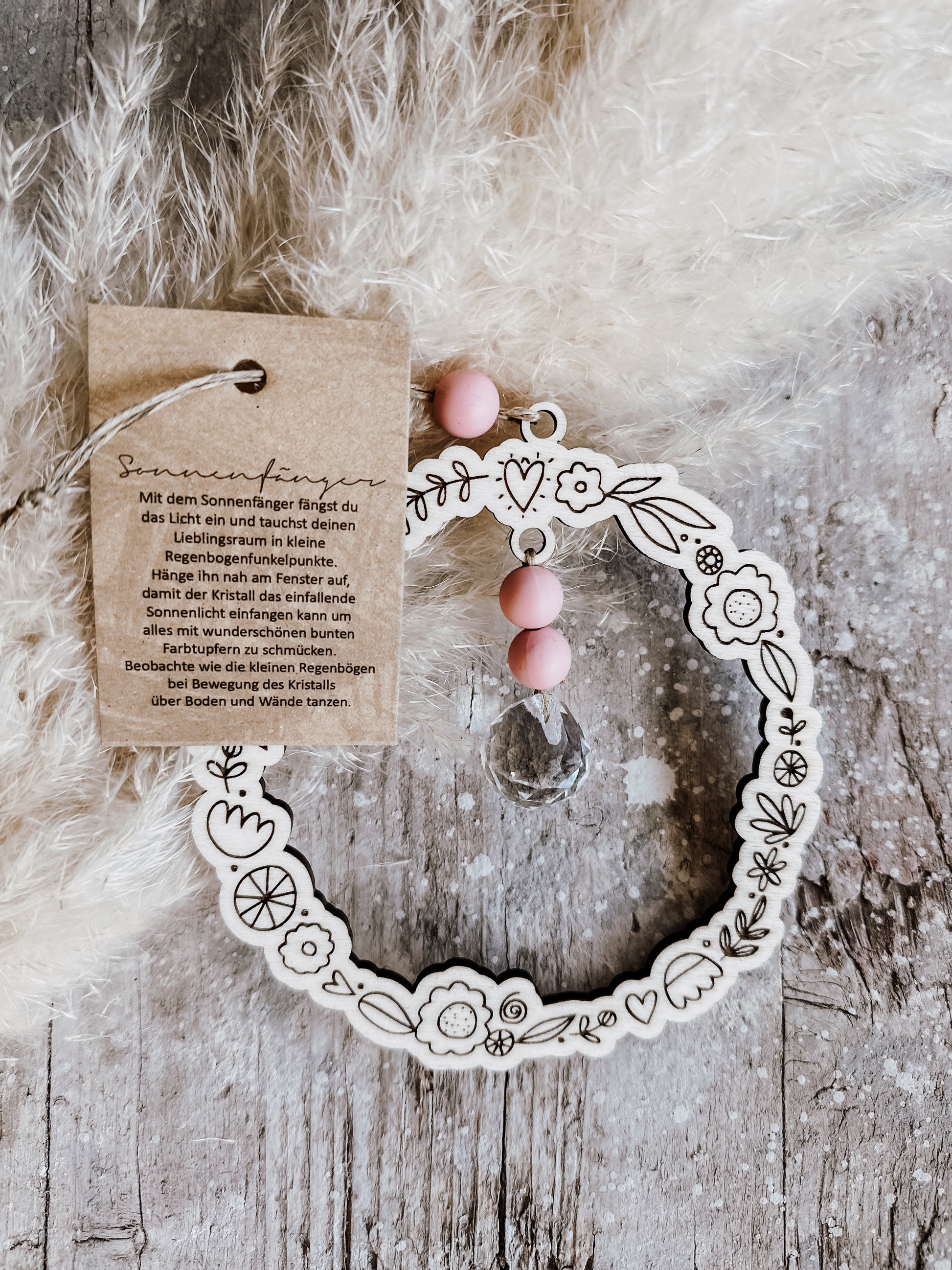 Mit dem Sonnenfänger fängst du das Licht ein und tauchst den Raum deines kleinen Lieblingsmenschen in kleine Regenbogenfunkelpunkte. Wähle aus den vorhandenen gravierten süßen Motiven oder personalisiere deinen eigenen Sonnenfänger. Perfekt für besondere Menschen oder dich selbst.
