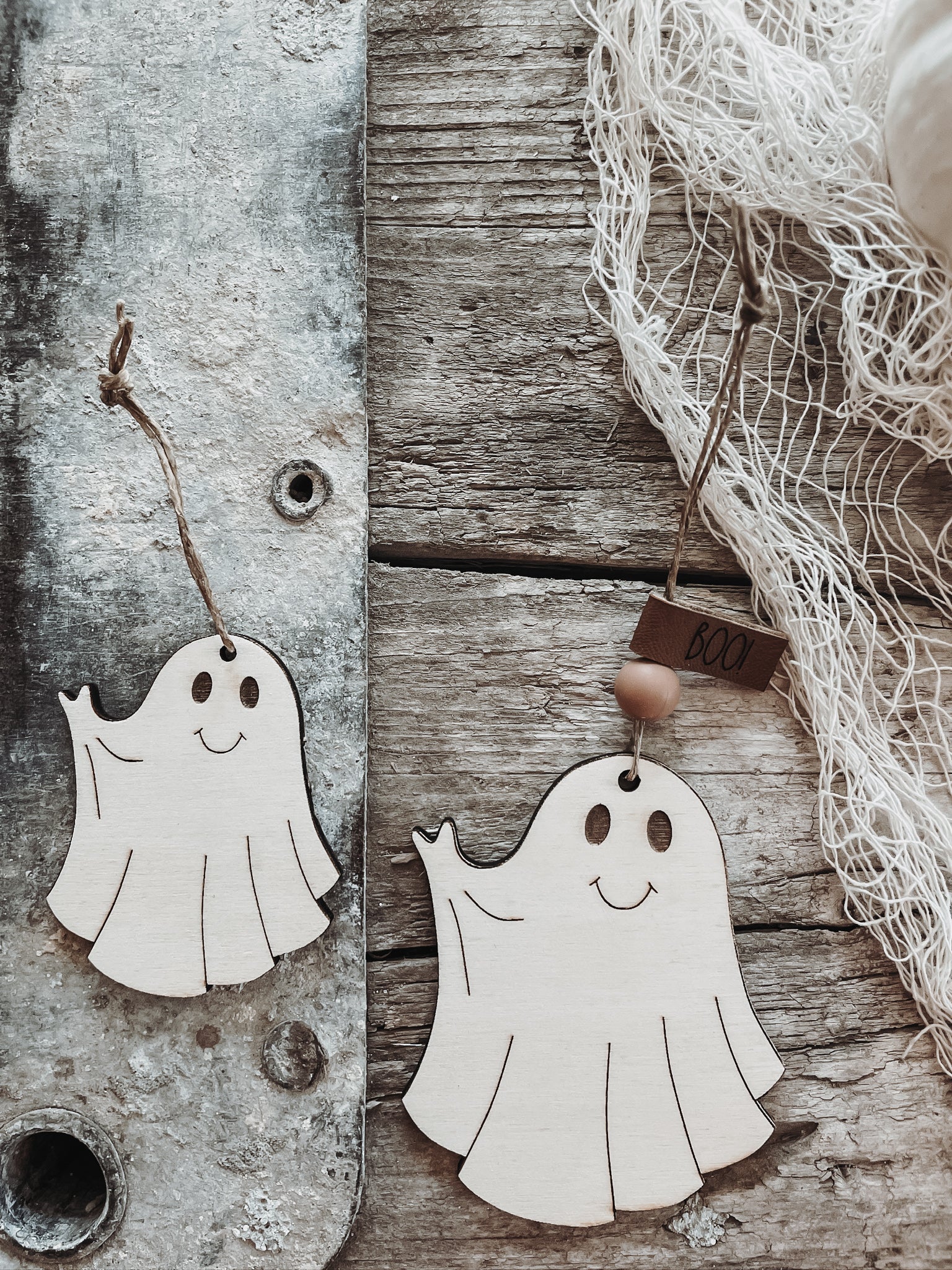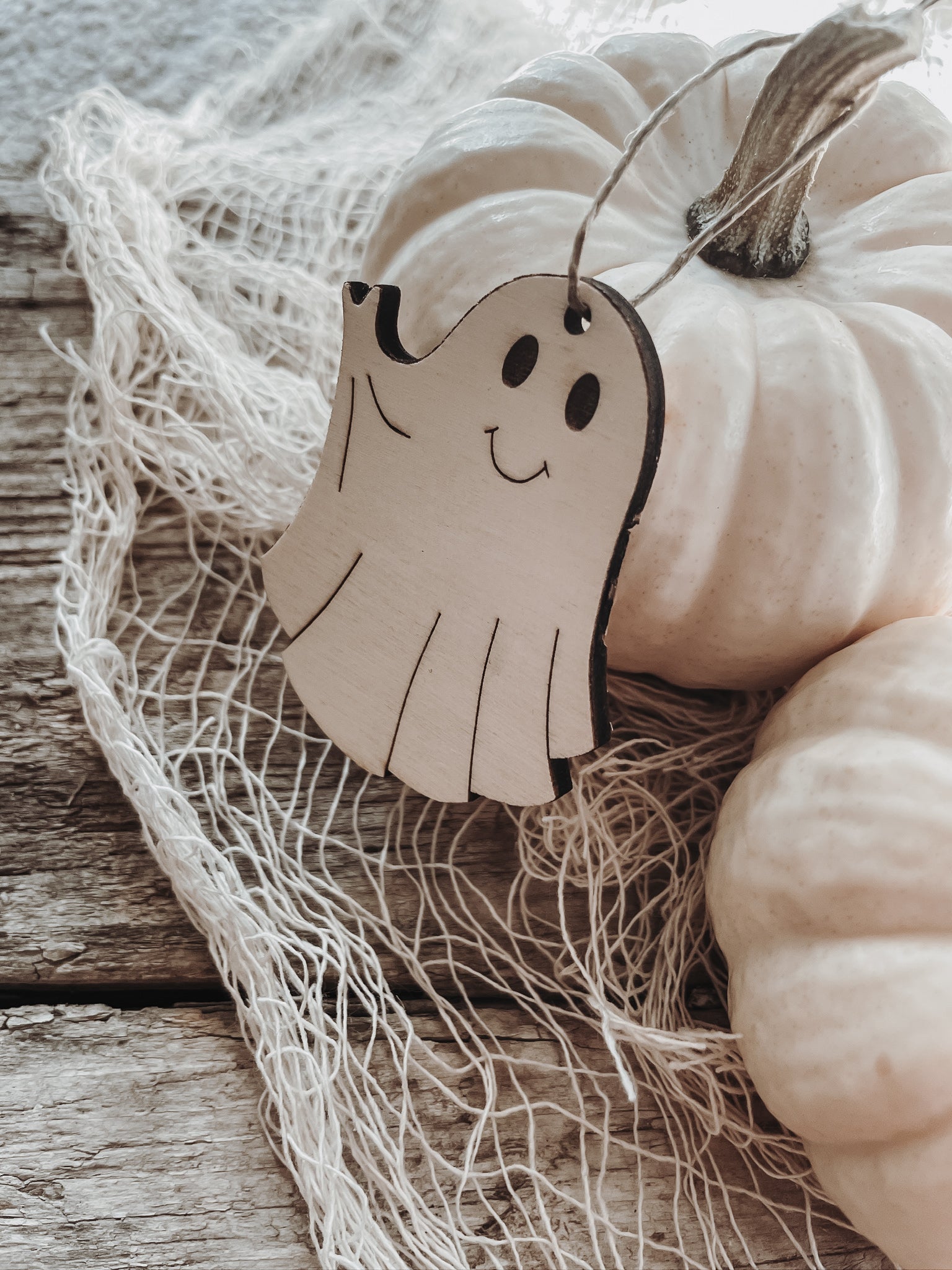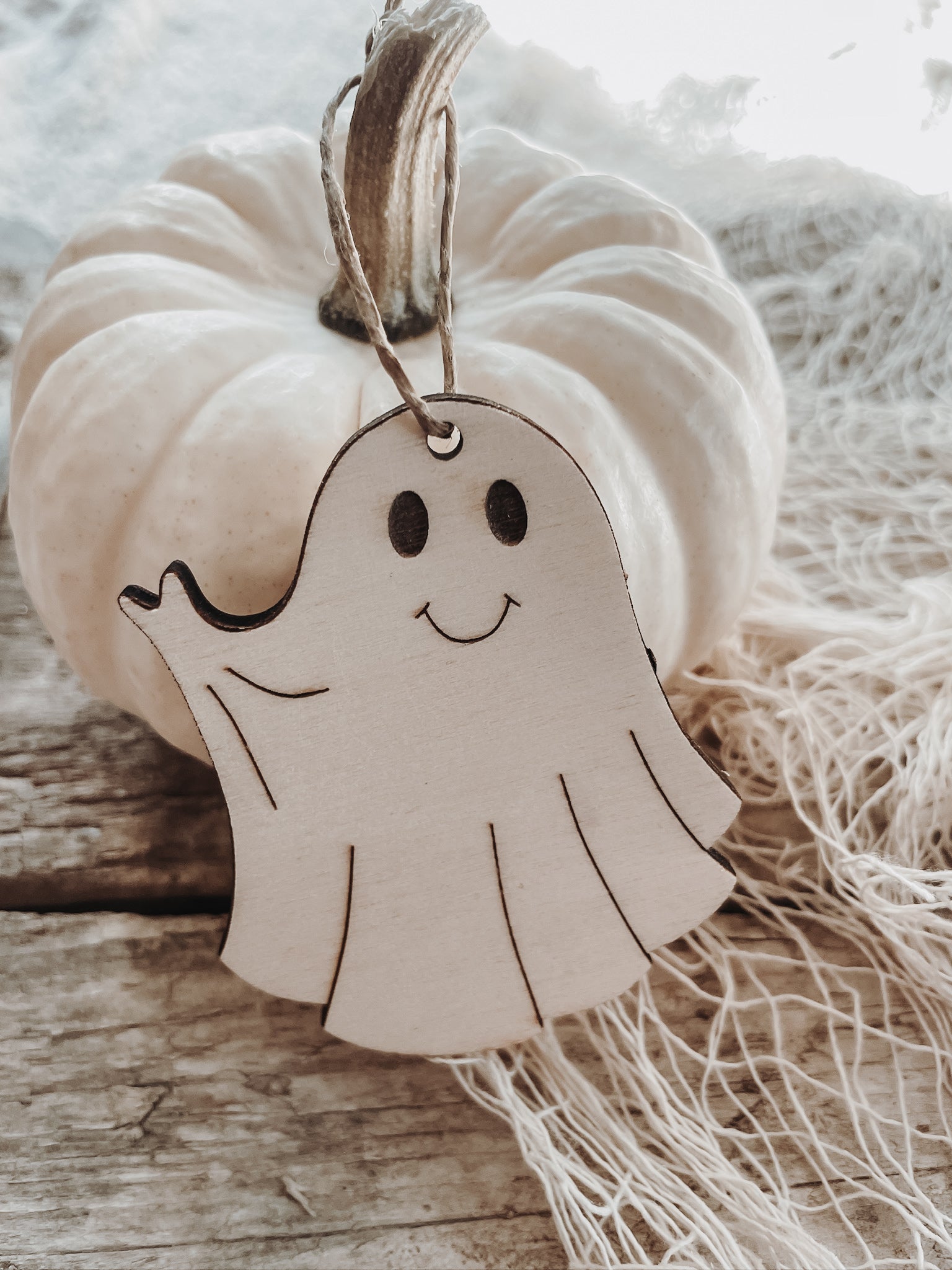 Schlichte Holzanhänger in Form eines süßen Geistes,für deine nächste Halloween-Party oder für deine diesjährige Halloween-Dekoration.