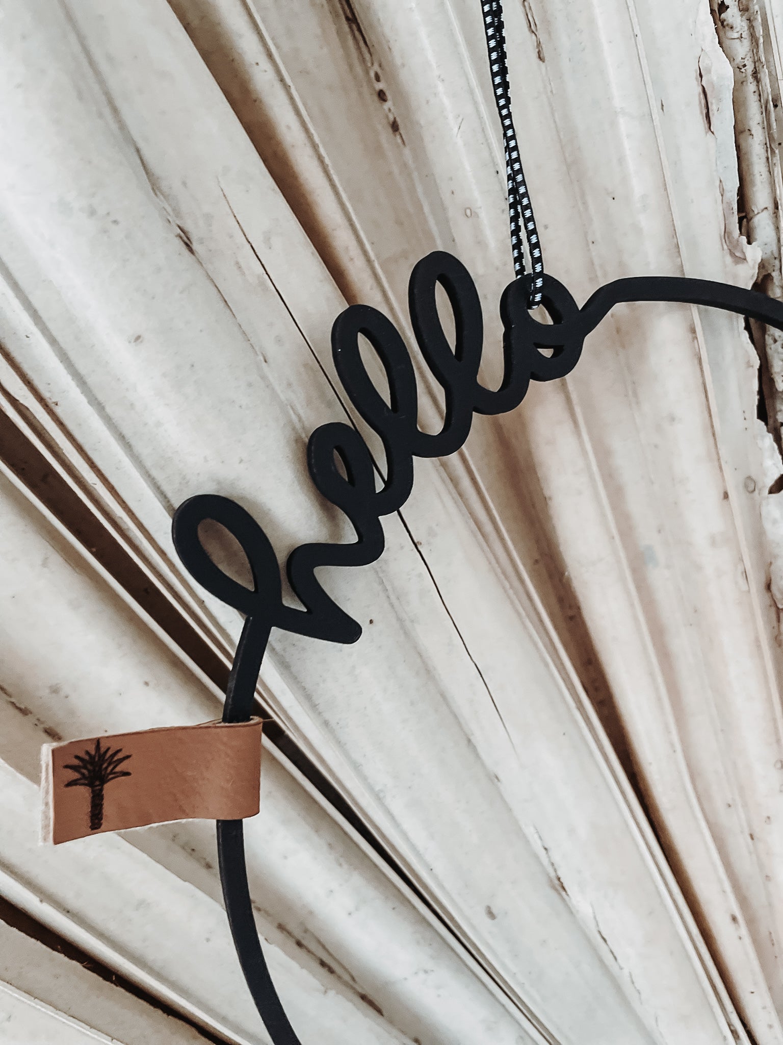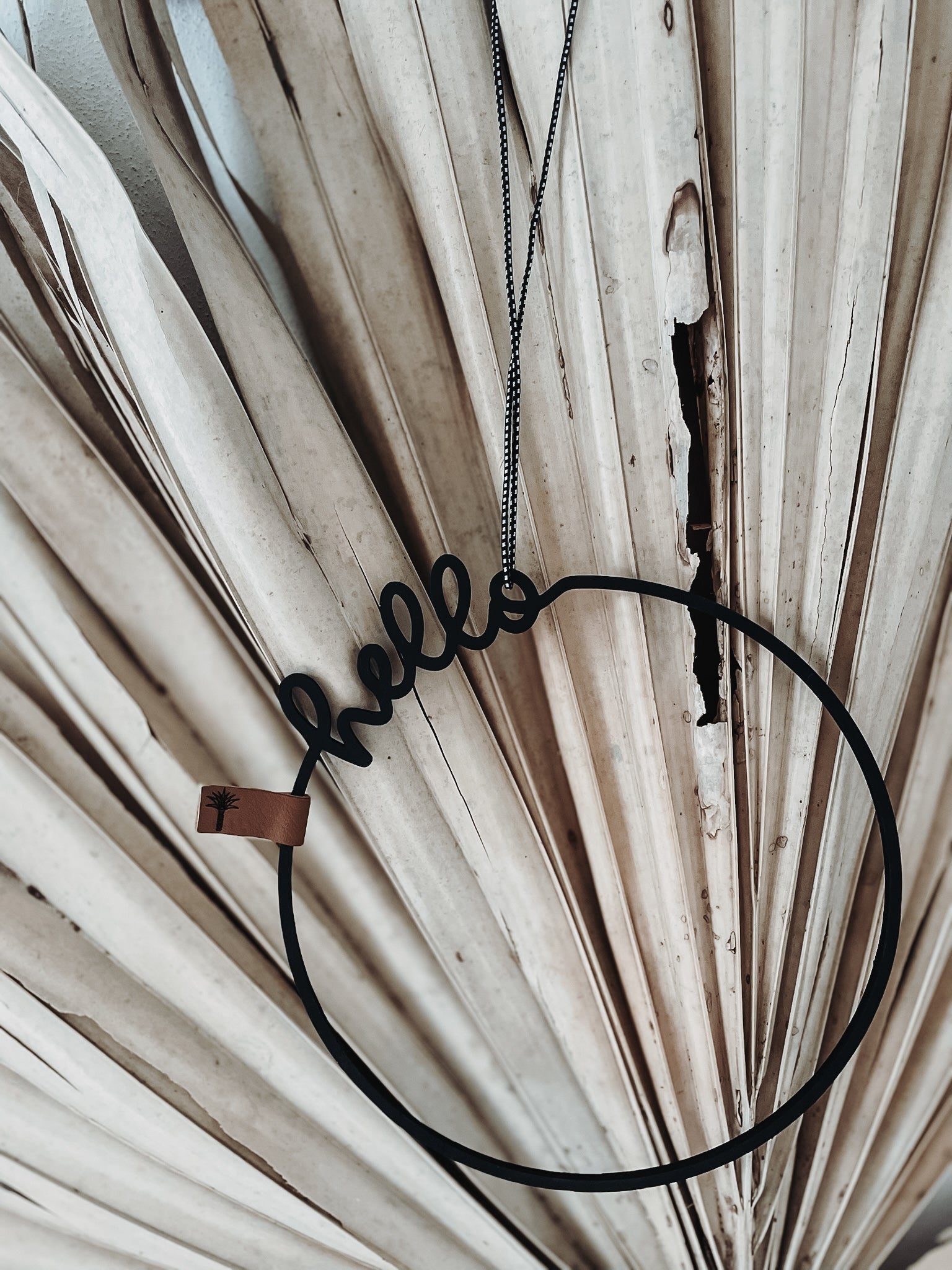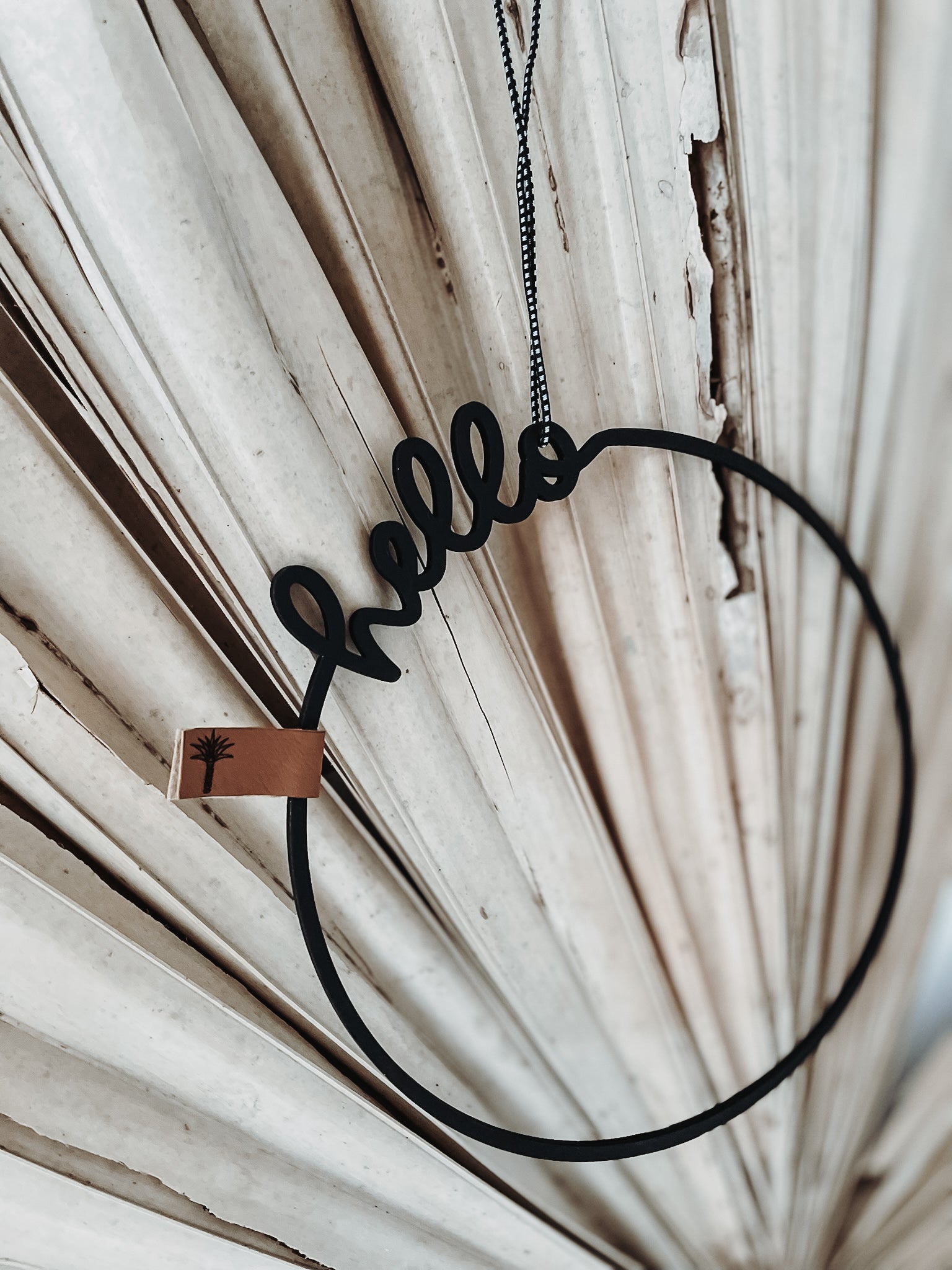 Der Holzkranz •hello• verschönert jede Tür.